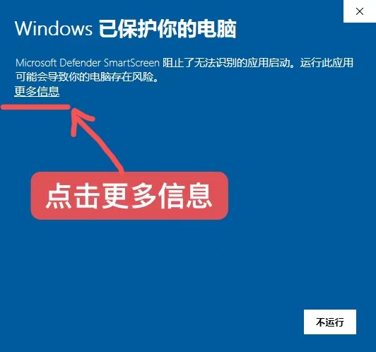 下载完成后,点击打开,如果提示 蓝色内容,请点击更多信息,然后在点击【仍要运行】