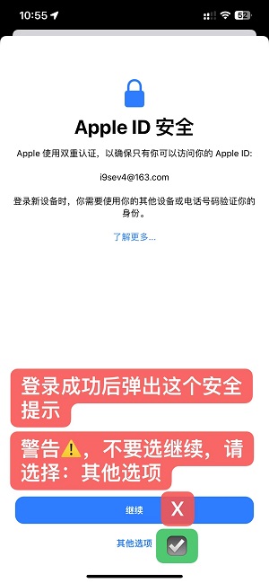 注意4:【美区账号】登录成功后【只能选】【其他选项】,然后选【不升级】操作。